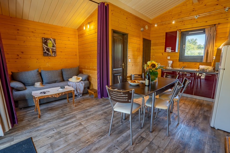 Cuisine équipée Un lit double et 2/3 lits simples - 2 chambres Une salle d'eau et WC séparés Un salon-cuisine avec canapé